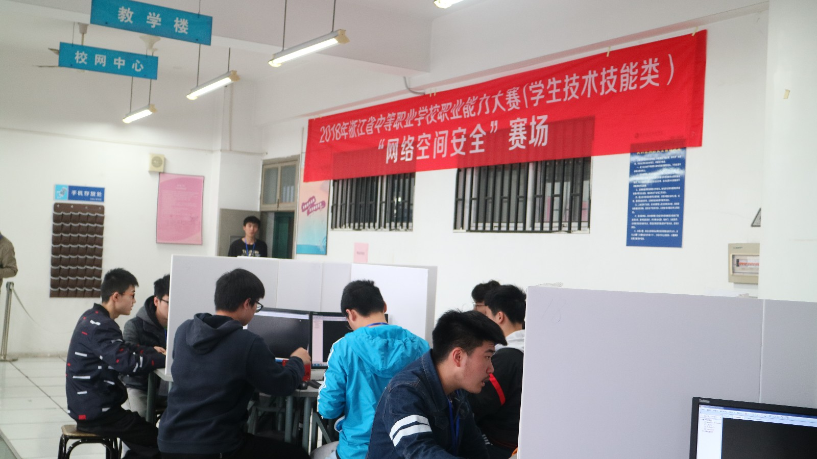 4月(yue)12日-13日,2018年浙(zhe)江省中等職(zhi)業(ye)(ye)(ye)學校(xiao)職(zhi)業(ye)(ye)(ye)能(neng)力大(da)賽(sai)(sai)(學生(sheng)技(ji)(ji)術技(ji)(ji)能(neng)類(lei))“網(wang)絡空間安全(quan)”賽(sai)(sai)項、“計(ji)算(suan)機(ji)檢測(ce)維修與數(shu)據恢復(fu)”賽(sai)(sai)項在杭(hang)(hang)州職(zhi)業(ye)(ye)(ye)技(ji)(ji)術學院(yuan)(yuan)校(xiao)隆重(zhong)舉行,本次大(da)賽(sai)(sai)由浙(zhe)江省教育廳(ting)主辦(ban)(ban),杭(hang)(hang)州職(zhi)業(ye)(ye)(ye)技(ji)(ji)術學院(yuan)(yuan)承辦(ban)(ban)。我司領(ling)導高(gao)度重(zhong)視此次大(da)賽(sai)(sai)親(qin)臨大(da)賽(sai)(sai)現場指(zhi)導工(gong)作。大(da)賽(sai)(sai)共有(you)來自(zi)(zi)全(quan)省9個地區19支隊(dui)伍38名學生(sheng)代(dai)表(biao)參加了(le)中職(zhi)網(wang)絡空間安全(quan)賽(sai)(sai)項以及來自(zi)(zi)全(quan)省7個地區21支隊(dui)伍42名學生(sheng)參加了(le)中職(zhi)計(ji)算(suan)機(ji)檢測(ce)維修與數(shu)據恢復(fu)賽(sai)(sai)項。由來自(zi)(zi)行業(ye)(ye)(ye)、企(qi)業(ye)(ye)(ye)和中高(gao)職(zhi)院(yuan)(yuan)校(xiao)的(de)專家擔任裁判工(gong)作,并從中選(xuan)拔優(you)秀選(xuan)手代(dai)表(biao)浙(zhe)江省參加全(quan)國技(ji)(ji)能(neng)大(da)賽(sai)(sai)。