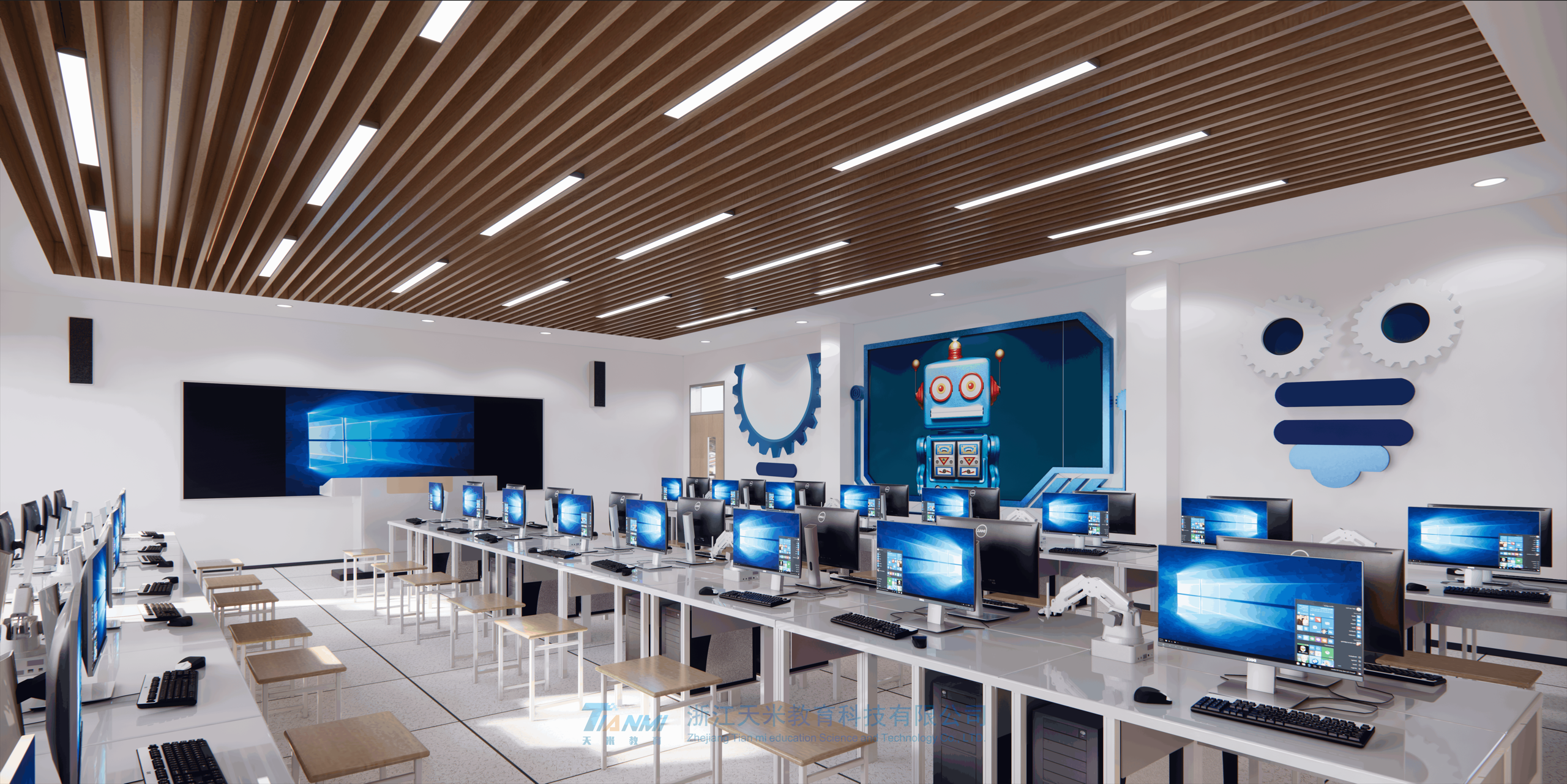 綜(zong)合(he)性仿真(zhen)實訓室(shi),根據學校實訓場地(di)的實際尺寸等比例布局,配(pei)套桌(zhuo)面(mian)機(ji)械(xie)臂、傳送帶模塊、滑軌模塊、視覺模塊以及(ji)實訓室(shi)教(jiao)學設備智(zhi)慧一(yi)體機(ji)、功放、音響、機(ji)柜(ju)、學生桌(zhuo)椅、教(jiao)室(shi)講(jiang)臺桌(zhuo)椅等,滿(man)足老(lao)師(shi)教(jiao)學及(ji)學生實訓服務。以此(ci)夯實編程基礎(chu)、進階人(ren)工智(zhi)能(neng)、探索(suo)深度(du)學習(xi)。 |