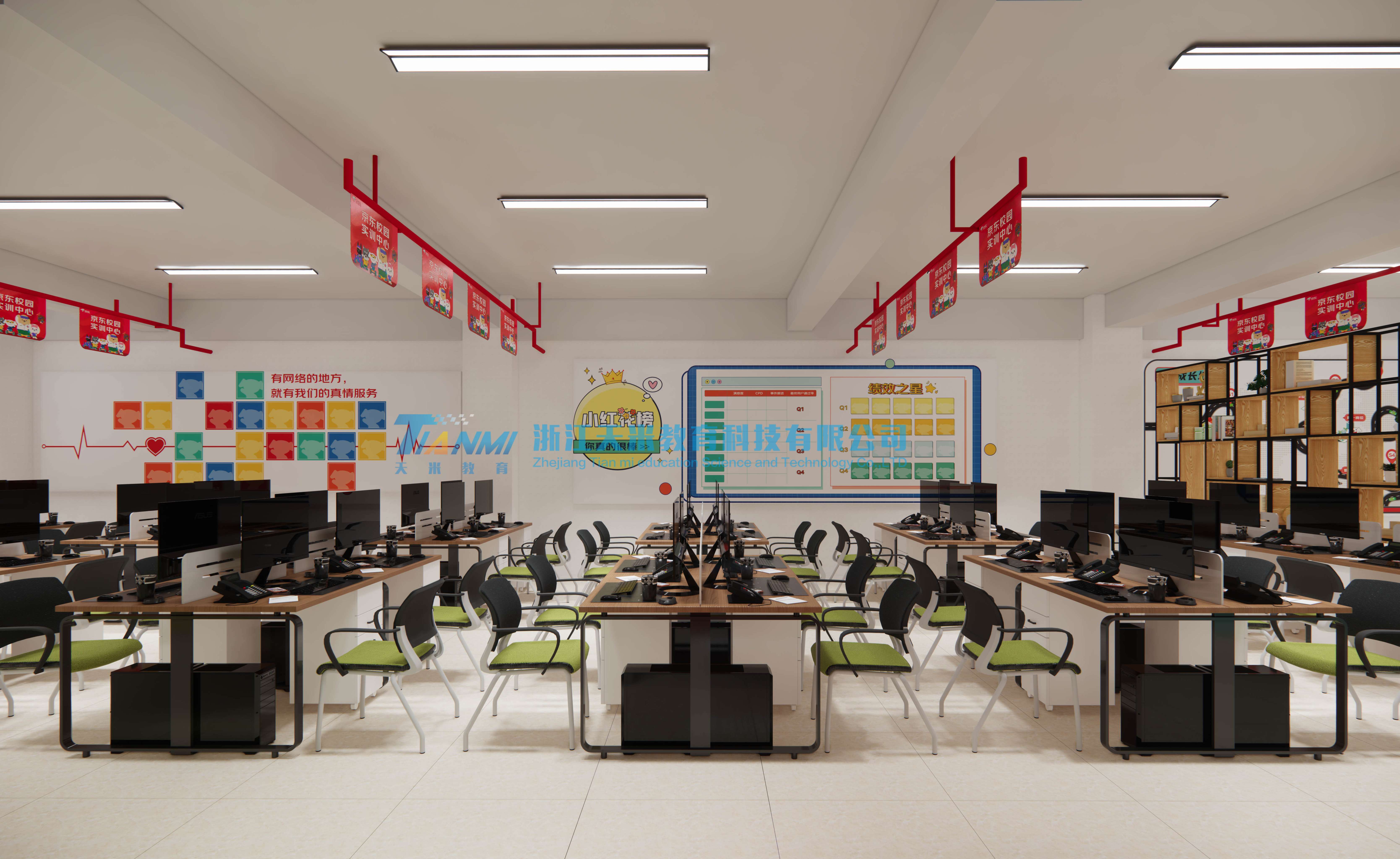 本實訓室按照職(zhi)場辦公環境進行布局,配備雙網絡覆蓋的(de)電腦。與京(jing)東合作共建、共用、共管(guan),全方位(wei)實現在校客(ke)服服務的(de)整(zheng)個(ge)流程,初步打通(tong)在校生職(zhi)業(ye)通(tong)道(dao)。 功(gong)能:除了承接京(jing)東自營618、雙11、雙12等大促活動外真實(shi)(shi)業務(售(shou)前、售(shou)中、售(shou)后)外,可根據實(shi)(shi)際情況承接(jie)京東(dong)自營(ying)常(chang)態(tai)化業務,實(shi)(shi)現(xian)呼(hu)叫中心(xin)座席的所有功能,帶動專業發展,為(wei)學(xue)生提供(gong)更多的實(shi)(shi)習實(shi)(shi)訓機會。培養學生的創(chuang)新創(chuang)造能力(li),從業能力(li)、以(yi)及職業適應性和(he)后(hou)續發展潛力(li)。 |